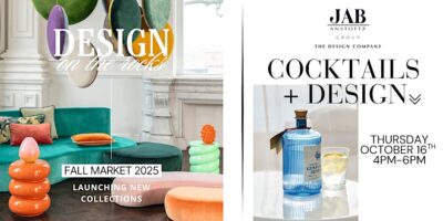 Join Us for Cocktails + Design during the D&D Building’s Fall Market. Join Us for Cocktails + Design during the D&D Building’s Fall Market, October 16th 4pm-6pm. Come, sip, talk all things design and experience the Fall Collections with our JAB USA team and also check out the latest from our multi-line brands.